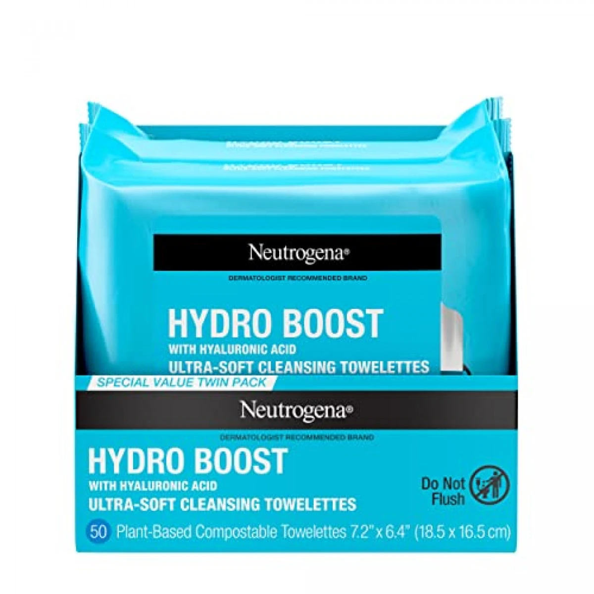 - Twin-pack of 25-count Neutrogena Hydro Boost Facial Cleansing Wipes made with hyaluronic acid and a micellar-infused, triple emollient gently cleanse skin and remove makeup while providing a boost of hydration and moisture