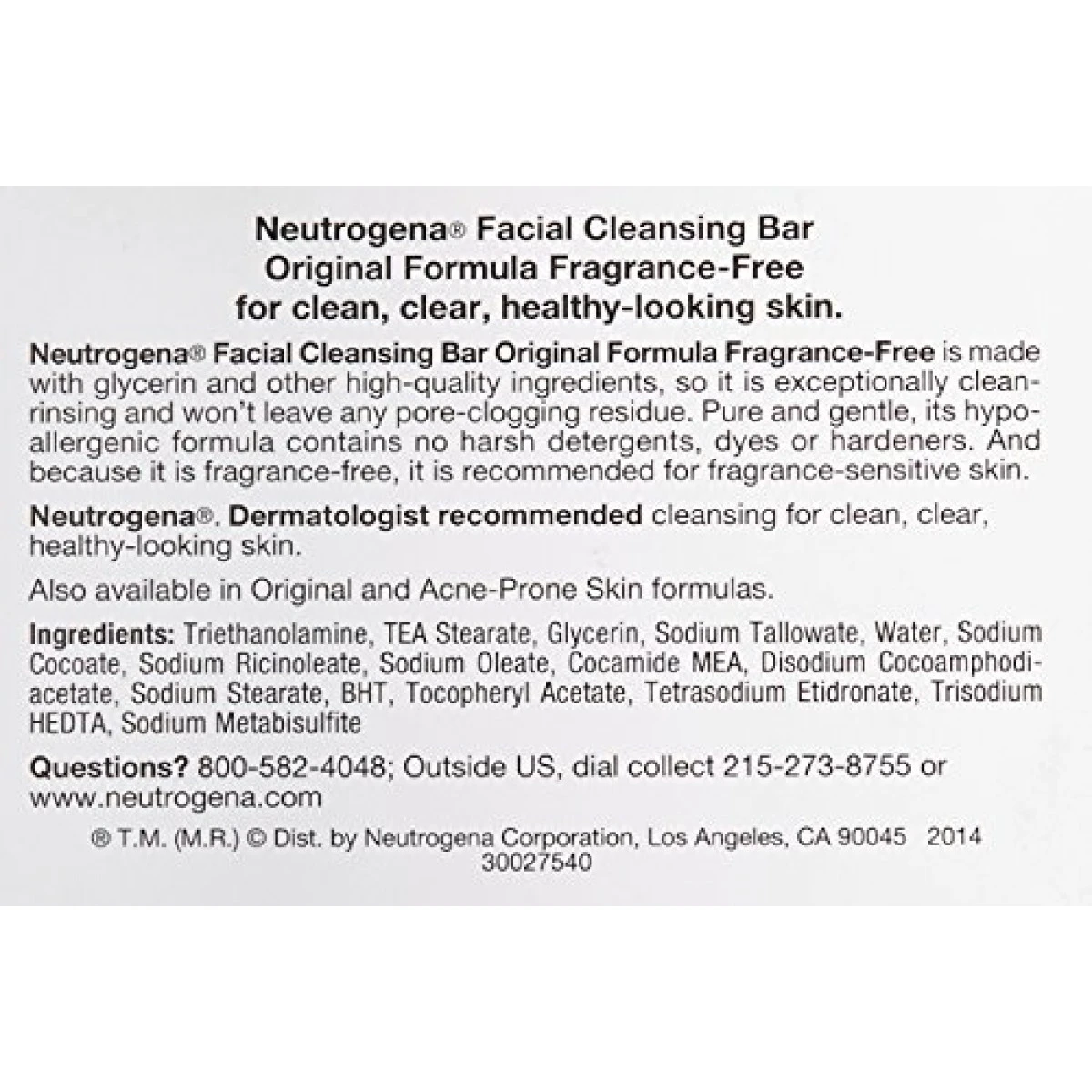- 3.5-ounce Neutrogena Facial Cleansing Bar in Original Fragrance-Free Formula for gentle, daily facial cleansing from a dermatologist-recommended skin care brand
